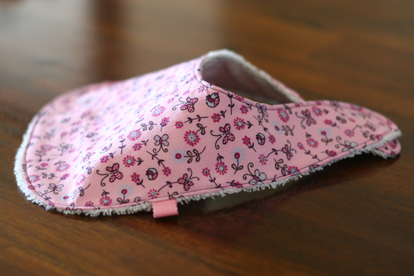 Leider musste ich Teddy den Latz wieder abschwatzen. Er ist doch ein Geburtsgeschenk für ein kleines Baby-Mädchen. Macht sich das zuckersüß gemusterte Stöffchen nicht toll als Lätzchen?