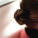 Auch dieser Dutt beginnt mit einem Pferdeschwanz. Und mit einem übergezogenen Duttring. Allerdings wird hier der Duttring bis zu den Enden gezogen, die Spitzen um den Ring gelegt und reingestopft.