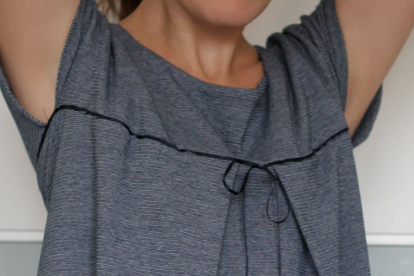 Ich schließe mich Ute an: der Ausschnitt ist wahrscheinlich zu weit. Leider habe ich keine Idee, wie man das noch ändern kann. Das Shirt finde ich aber trotzdem sehr schön, toller Stoff.