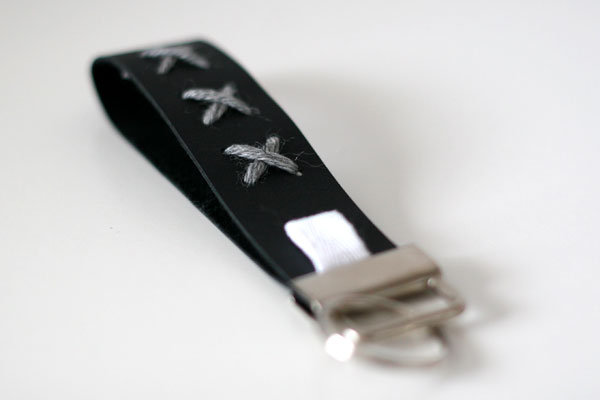 Erinnert ihr euch noch an mein erstes Schlüsselband. Ganz einfach in Schwarz. Das existiert so jetzt nicht mehr. Lochzange und Merinogarn haben drei Xe darauf gezaubert. So wird ein Schuh draus ;.)