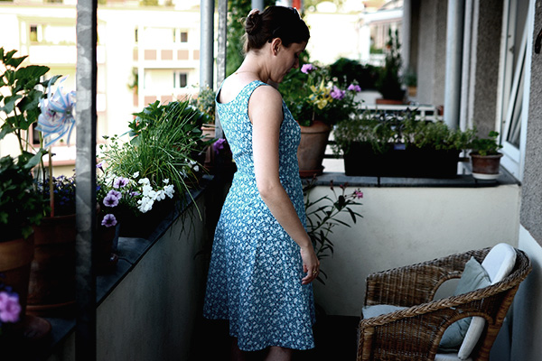Gestern habe ich mich abends noch schnell auf dem Balkon drapiert, damit ihr endlich ordentliche Tragebilder von meinem Sommermama-Sew-Along-Kleid bekommt :.)