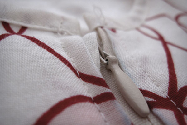 Ansonsten: naturfarbener Reißverschluss in 60 cm (an den ich noch ein wenig Länge geschummelt habe), naturfarbenes BW-Schrägband und ebenfalls naturfarbener Jersey für das Futter. Feinster Schweizer Jersey aus mercerisierter Baumwolle: kuschelig zart und seidig glänzend!