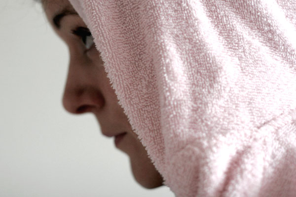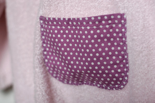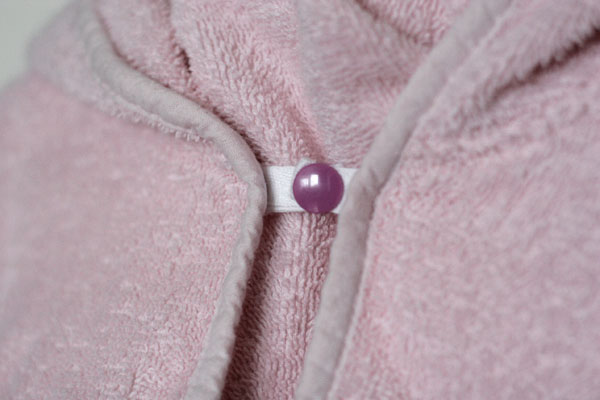 Aber da der Halsausschnitt sehr weit war und die Maus immer darauf bestand, das Bademäntelchen mit einer Haarklammer zu verschließen, habe ich kurzerhand ein paar Kam Snaps montiert.