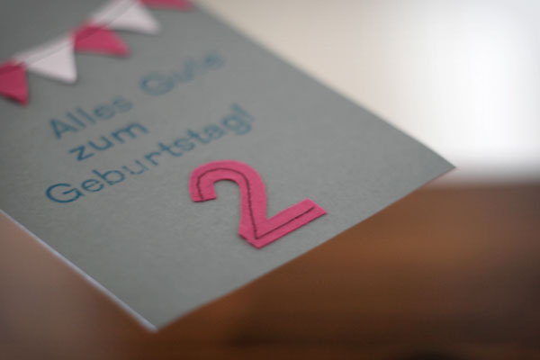 Drunter noch schnell eine 2 »appliziert«. Fertig ist die Geburtstagskarte für ein kleines Mädchen.