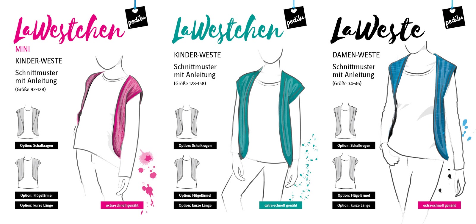 Den Schnitt gibt es als »LaWestchen MINI« (92–128) oder als »LaWestchen« (128–158).