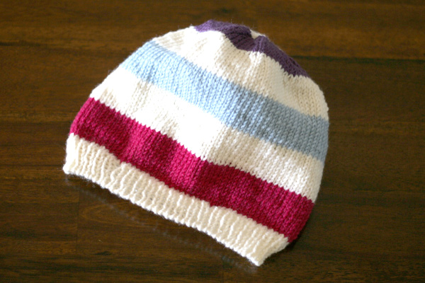 Das Garn ist das Extra Merino von Schachenmayr nomotta, wie schon hier verwendet. Deshalb auch »Streifenjäckchen-Gedächtnismütze« :.(