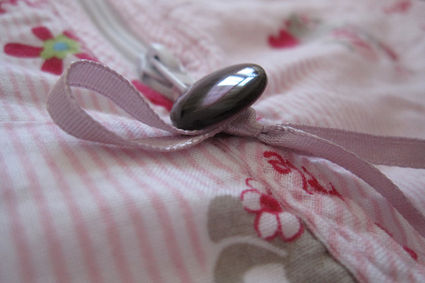 Wie es geht? Einfach ein Satinband an den Zipper knoten und unterhalb des Reißverschlusses einen großen Knopf annähen. Und dann: Kind rein, Reißverschluss zu, Bändchen um Knopf schleifen oder knoten, fertig! :.D